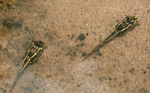 Tadpoles with distinctive yellow-gold longitudinal stripes.